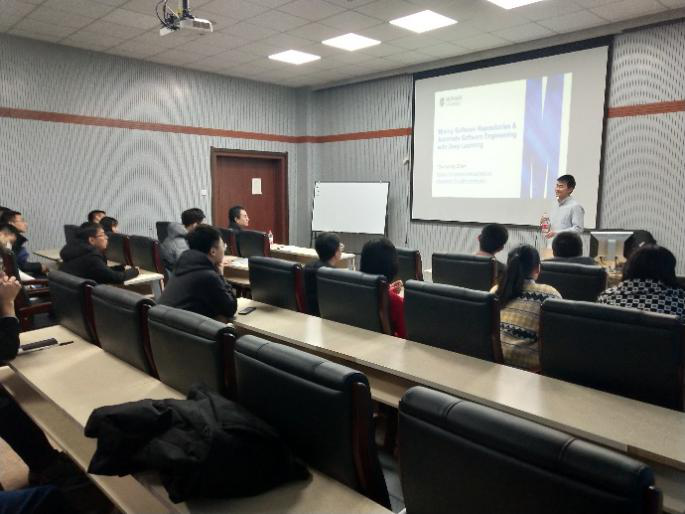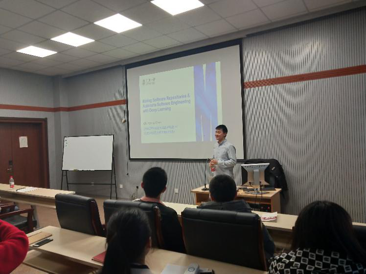 2018126日上午,来自澳大利亚Monash University的陈春阳老师在吉林大学计算机楼A521做了题为:“Mining Software Repositories & Automated Software Engineering with Deep Learning”的讲座报道。陈春阳老师博士毕业于新加坡南洋理工大学,师从邢振昌老师和刘扬老师。博士在读至今,陈老师积累了丰富的研究经验,其主要研究方向为:挖掘软件仓库、文本挖掘、深度学习以及人机交互。在多年的研究经历中,陈老师十多篇论文被国际顶级会议录用,且2016年的论文Similar TechASE评为Best Tool Model,同年另一篇论文被SANER评为当年的Best Research Paper。今年,陈老师的论文Deep Gauge又荣获ACM SIGSOFT杰出论文奖。