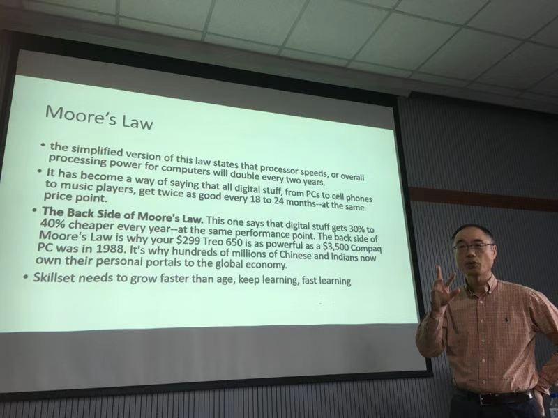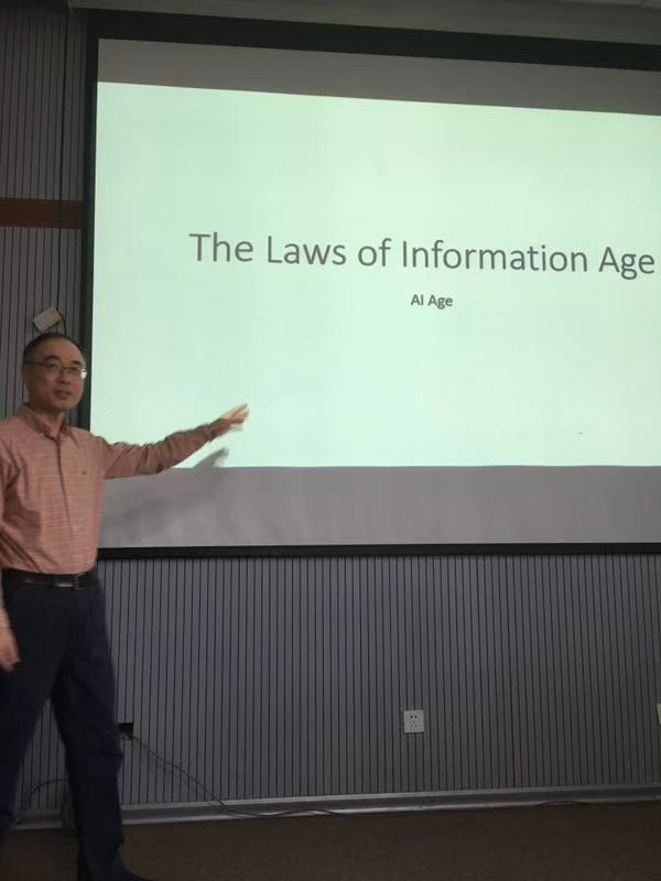 邀请,在计算机楼A521作了题为“The Laws of Information Age(信息时代的法则)”的学术报告。