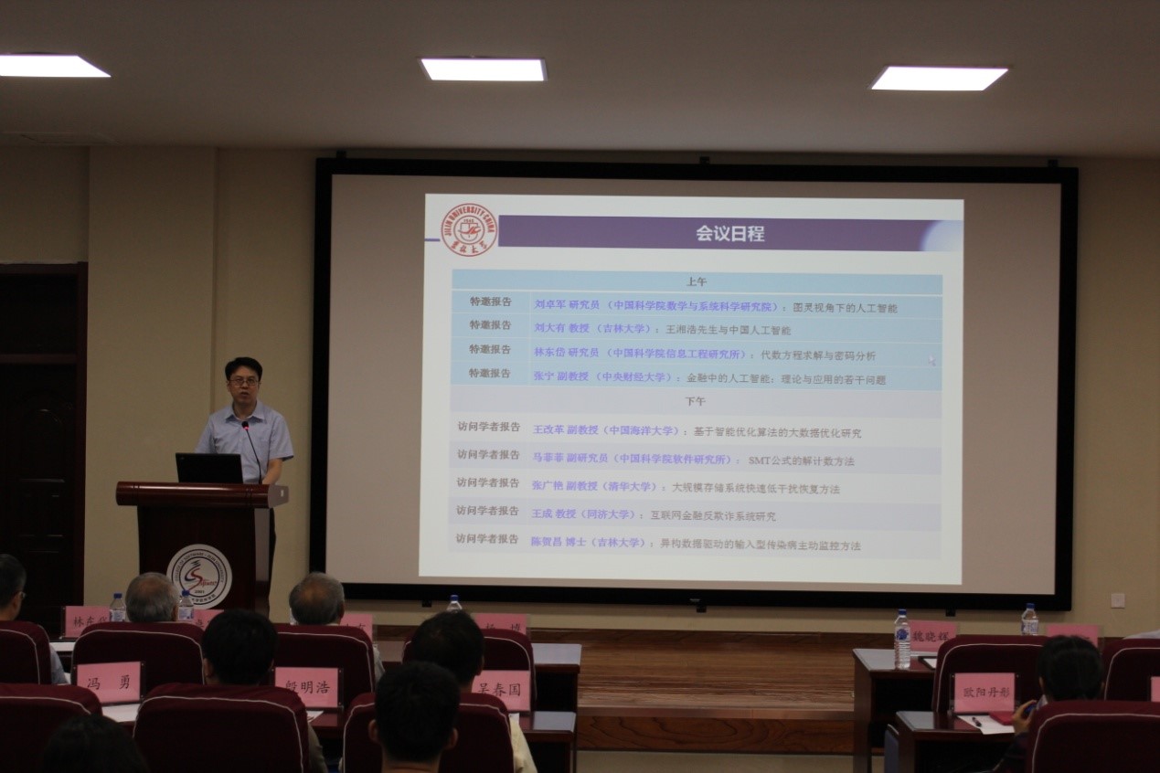 数学与系统科学研究院数学机械化研究中心优秀博士毕业生、中央财经大学张宁副教授分别作了报告。刘卓军研究员的报告题目是“图灵视角下的人工智能”,他简要介绍了吴文俊的生平,回顾了吴文俊院士在定理机器方面做出的杰出贡献,然后从图灵的视角对人工智能的发展进行了深入的分析。他进一步指出,在人工智能蓬勃发展的今天,大学和研究机构更应坚持在基础理论和算法研究上发力,有积累进而才有机会,吴文俊、王湘浩等老一代科学家的远见卓识必将伴随着中国人工智能事业深入发展而彰显更大的价值。刘大有教授的报告题目是“王湘浩先生与中国人工智能”,他深情回顾了中国人工智能奠基人、杰出数学家、教育家、计算机科学家、红学家、吉林大学计算机学科奠基人王湘浩院士的壮丽人生,并重点介绍其在关键时刻与吴文俊院士、陆汝钤院士共同为推动中国人工智能发展所做出的卓越贡献。刘东岱研究员的报告题目是“代数方程求解与密码分析”,报告从流密码算法的代数攻击出发,介绍代数攻击的思想、方法以及由此产生的密码设计新准则。张宁副教授的报告题目是“金融中的人工智能:理论与应用的若干问题”,报告基于讲者在人工智能在金融方面应用的相关理论和应用的工作经验,从行业角度、学术角度和监管角度对两者融合提出了12个问题,并对这些问题在不同程度上提供了一些解决途径、探索和思考。