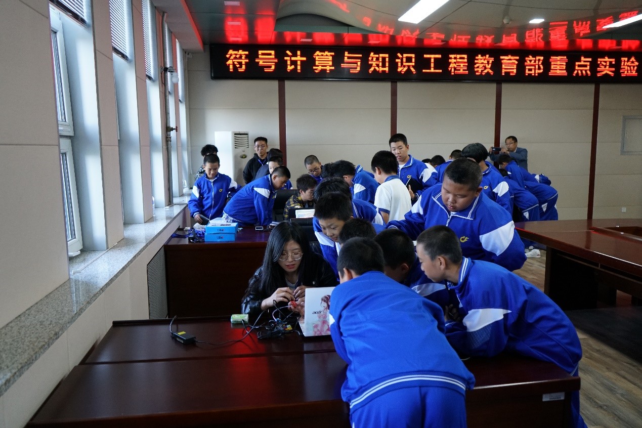 符号计算与知识工程教育部重点实验室有着辉煌的历史,作为依托吉林大学的12个教育部重点实验室之一,由中国人工智能奠基人王湘浩院士领导创建,并在国内最早开展人工智能研究,是国内唯一一个以符号计算和知识工程为主要研究方向的教育部重点实验室,是东北地区唯一一个专门从事人工智能领域研究的教育部重点实验室,在国内外人工智能研究领域享有崇高声誉。本次活动是实验室为响应2019年全国科普日暨吉林省第十七届科普周活动而专门举办的科技开放日活动。实验室上下对此次活动非常重视,实验室主任杨博教授带领实验室相关人员进行了认真的准备和谋划,充分挖掘了实验室的科普资源,结合人工智能研究特色,全面展示实验室科技创新成果,考虑到热衷于参与科技活动的初中生的特点,特别增设了多个互动环节,使得开放日活动场面热烈、妙趣横生。未来,符号计算与知识工程教育部重点实验室将持续面向社会公众开放,积极开展科普宣传。