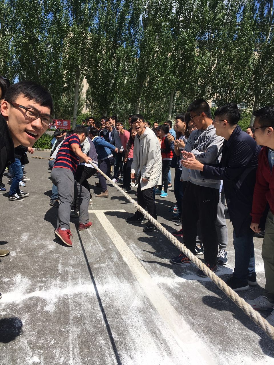 楼前停车场举办了计算机院第八届教研室师生拔河比赛。