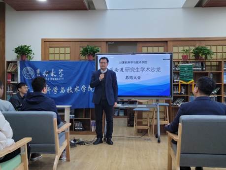 在学术研究上开放交流的良好氛围。紧接着,他针对工作情况提出了两点建议:在下学期的活动中,可以邀请校内或校外的老师来现场进行点评与讨论;同时,可以设置留言板以供不同教研室共同讨论交流。他希望本活动可以延续下去,形成属于吉林大学计算机学科的特色与亮点。