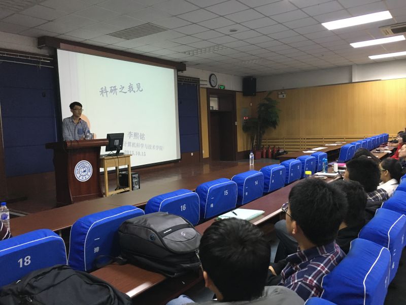 研究生最高荣誉——王湘浩奖学金。作为新留教师,显然,李熙铭老师更容易与学生们沟通和交流,对于如何合理安排和分配研究生期间的学习时间,李熙铭老师有着更鲜明的经历与同学们分享。本次报告中的主要内容包括:科研的必要性,什么是科研,以及科研人员的自我修养。同时李熙铭老师以自身经验与经历,说明了近些年作为研究生乃至博士生应该如何起步,通过看论文,找问题,试图解决问题,写论文这四步的连续循环,最后达到毕业要求以及独立科研的能力。他强调,科研之路是要有耐心,刚开始科研的时候,会不断地查参考文献,但慢慢就会学到更多。除此以外,李熙铭老师还考虑到现在研究生新生们普遍存在的困惑和疑虑,向大家阐述了科研的步奏,如何看论文、找资料、什么是EI与SCI等等。整个讲座过程中,李熙铭老师如亲切的学长一般,与同学们充分互动,气氛轻松融洽。
